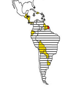 Bolivia, Brasil, Venezuela, Ecuador, Perú, Surinam, Guyana Francesa, Panamá, Trinidad y Tobago