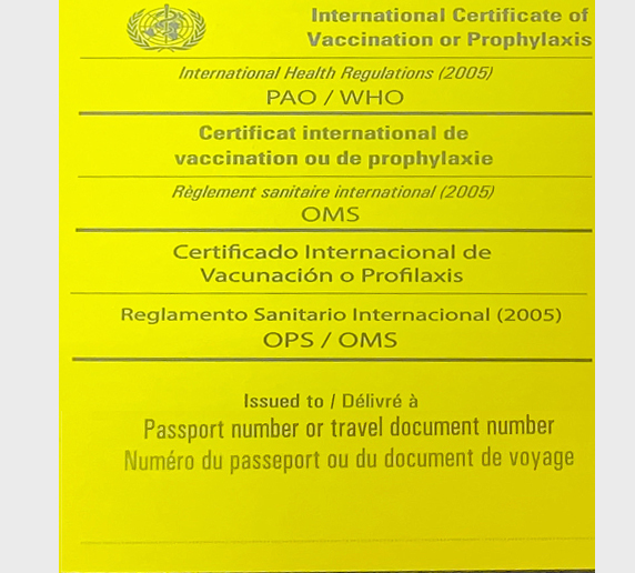 El Certificado Internacional de Vacunación o de Profilaxis, recomendado para viajeros que reciben las vacunas autorizadas por la OMS.